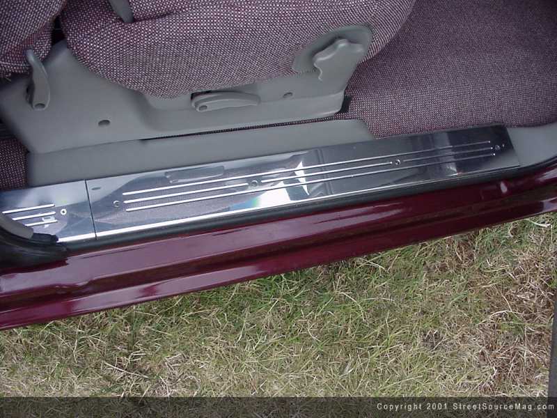With the air-ride gauges being covered in billet along with the control panel, that would leave only the flamed billet mirror to be named. To accompany the array of billet in the interior, a Weld CTX 01 steering wheel would be installed.