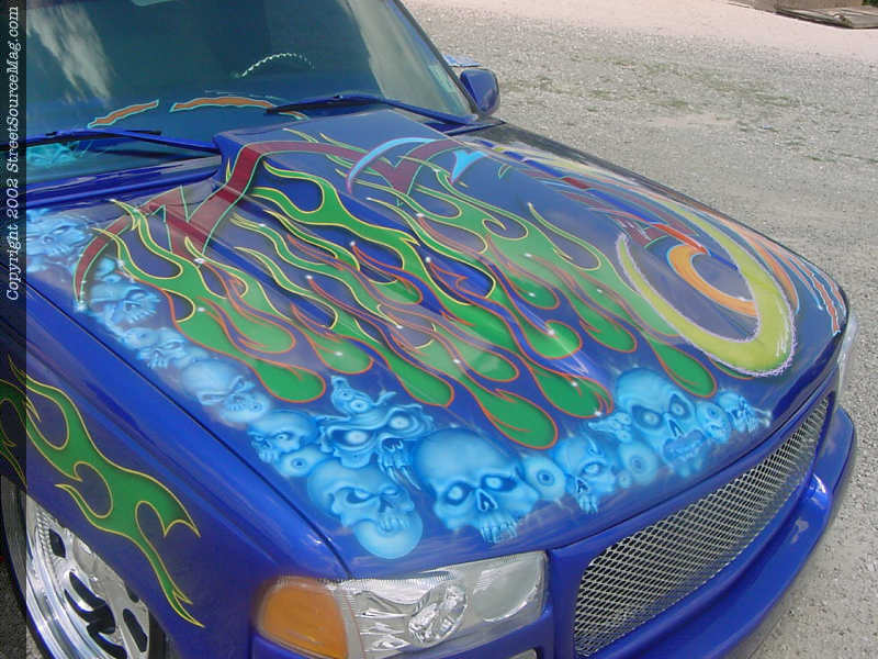 The colors of choice consist of: candy apple red, limetime, passion pearl, blue/purple mix, orion silver, magenta, oriental blue candy, cobalt blue candy, get'em green, prizamatique flake and like Jason says "etc, etc, etc". Now I have never seen a vehicle that just had way too many colors list but I guess there is a first for everything.