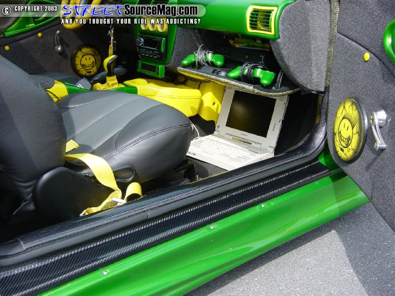David Smith from St Albans, West Virginia performed all of the paint and bodywork. Once the paint was cured, Kool Look Graphics laid out the euro style carbon fiber vinyl graphics. For the extra touch, the trunk hinges were reworked to allow the trunk to flip up at shows.