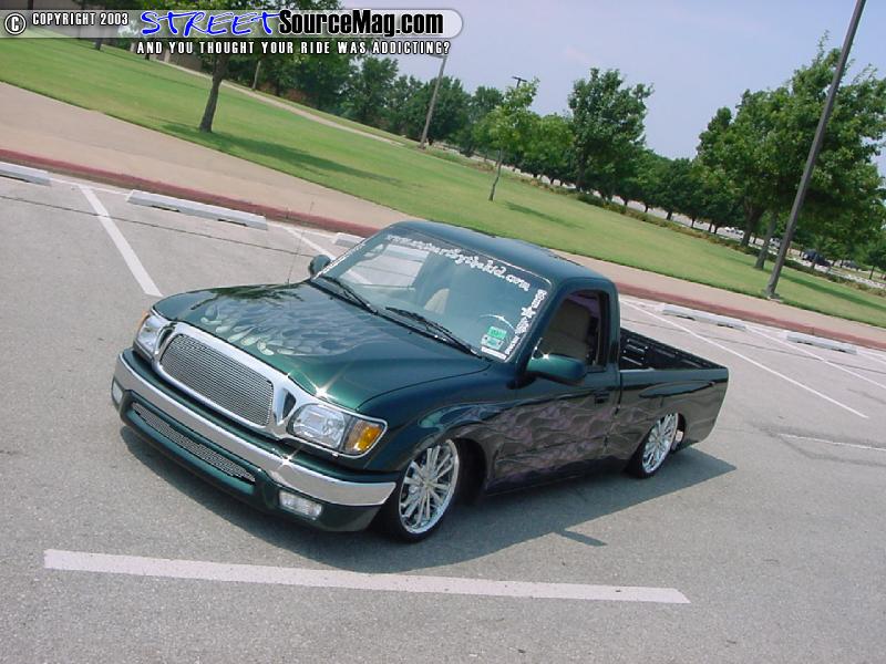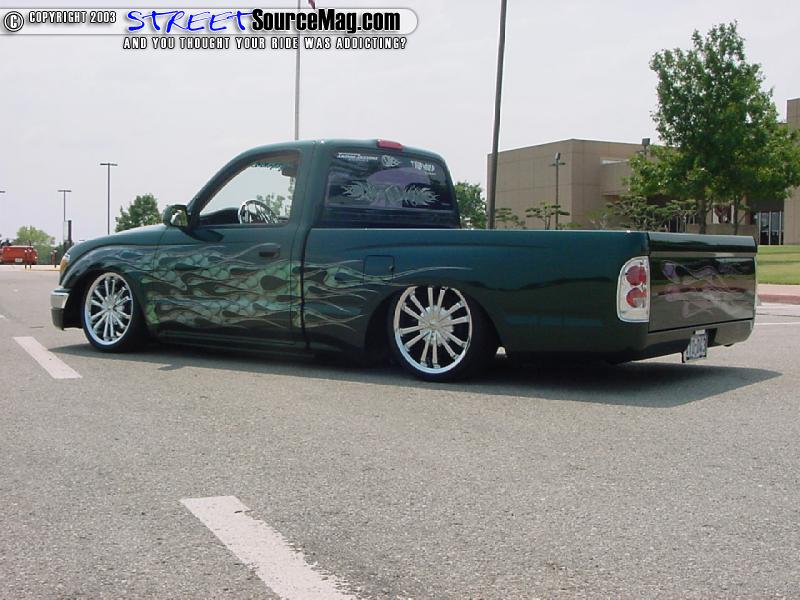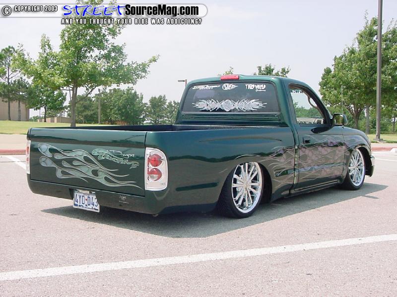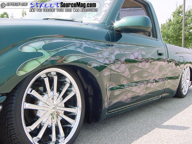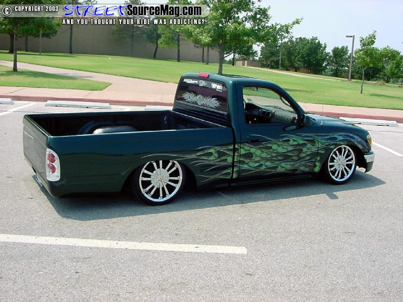 First off this truck was bought brand new for a cool 12k, Mike cruised it around stock for a few months till he realized that he had to be closer to mother earth. Mike dealt with a few suspension shops that burned him, then he found Mike Farmer of Insane Designs. While at Insane Designs Farmer junked all the work that other shops have done and started fresh.