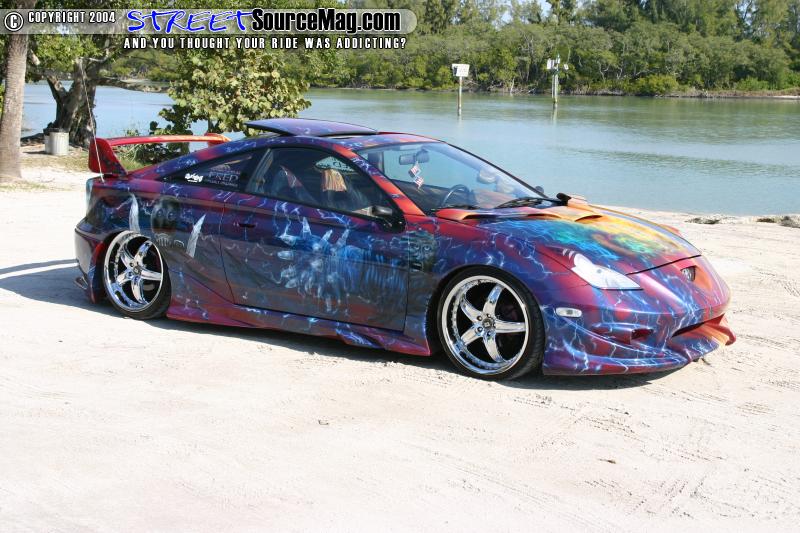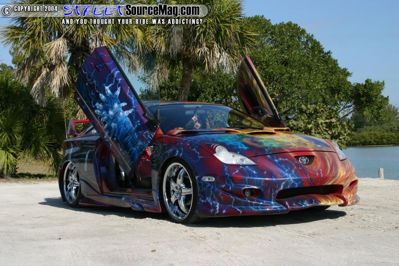 Jose started with a bone stock Toyota Celica. Jose started by bolting up a Veil side body kit, and Altezza tail lights for a different look. Up front Jose fitted some hood spoilers and headlight eyelids. Out back sits a custom wing. The car was last fitted with lambo style doors.