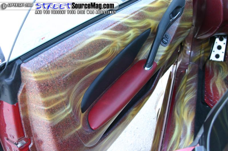 The paint on the interior matches the graphics and paint on the exterior of the car, which really brings the paint job to life. The car was also fitted with a Kenwood touch screen CD/DVD player.