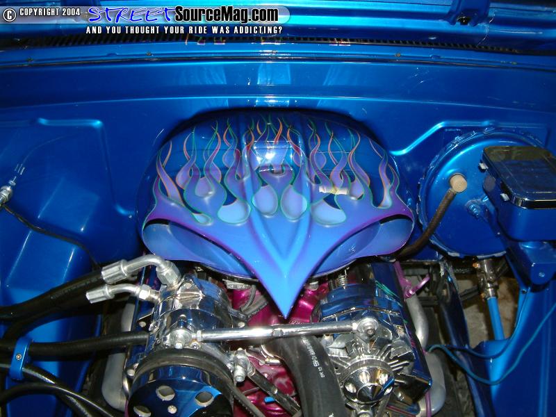 Knowing that every part of the ’65 was in need of being redone the engine would be next on the list. Utilizing a 350 implant, Mike would install a custom fabricated breather system along with a Vintique heat and air. A Painless wiring harness would then be installed along with Street & Performance brackets to clean things up.