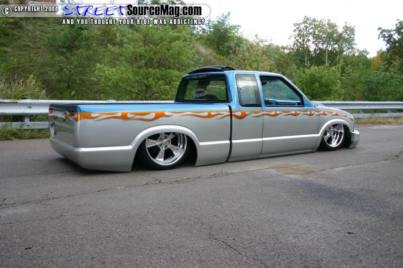 Starting things off Ryan’s S-10 was treated with a 3 ¾” body drop to allow his body to lay flat on the ground with some help from his air suspension. Because Ryan’s truck was already bagged on all four corners with a KP Components 4 link, Chasses Tech spindles, and 2600 bags all around laying on the ground would be no problem.
