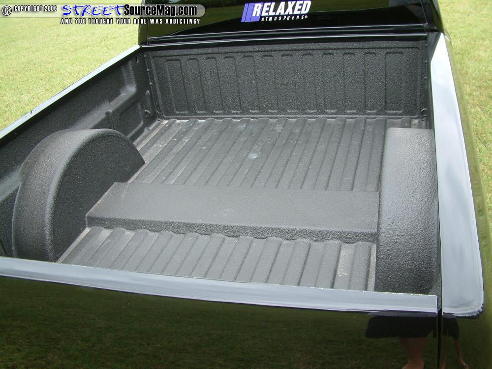 Sigler would now find his GMC tucking the 22x10 Colorado Custom Somerset wheels wrapped in 295/30 Toyo Proxes rubber. Working the exterior of the GMC, Sigler would rework a few panels. Starting up front a Stull billet insert would be installed along with shaving the door handles. Next Sigler would have the stake pockets shaved along with the tailgate handle.