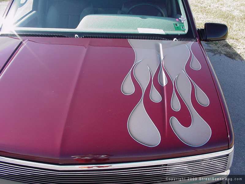 The paint, which would end up being sprayed, would be a Dark Metallic Garnet with some light pewter flames.  Since this ride was no longer just a tow rig, why not touch up the interior? Well that was what David must have been thinking as well. With help from friend Tony Rhodes, they managed to redo the interior just 2 weeks before it was time to head out to West Coast Nationals. What was done you ask? Be patient and I’ll get to that.