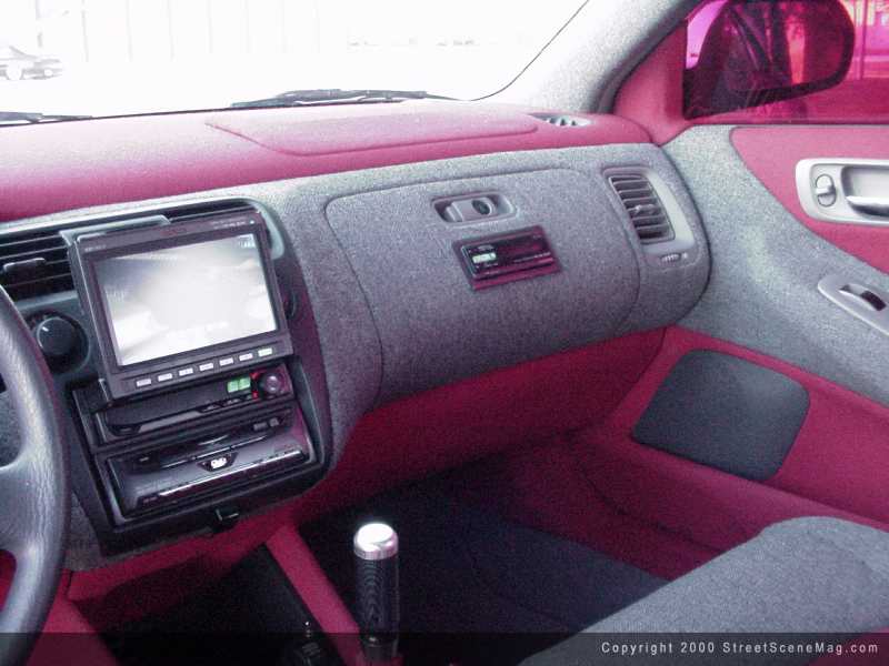 To help the clarity of the tunes, a Alpine PXA-H510 Digital sound processor EQ was then installed. With the EQ come the high quality speakers. For the high end, Tony decided to go with a set of 6 1/2 –inch Pioneer’s in door along with 6X9’s in rear. To keep up with the highs, the installation of 3 JL 12W6’s needed to happen. With a clean install, the use of red and gray tweed was again used to help match the car’s interior. The amps used to push the power to the speakers would be; Alpine MRV-F407 4ch amp, Soundstream class A6.0, and an Alpine MXE M350 1ch. The amps were installed into the rear floor for extra points while in competition.