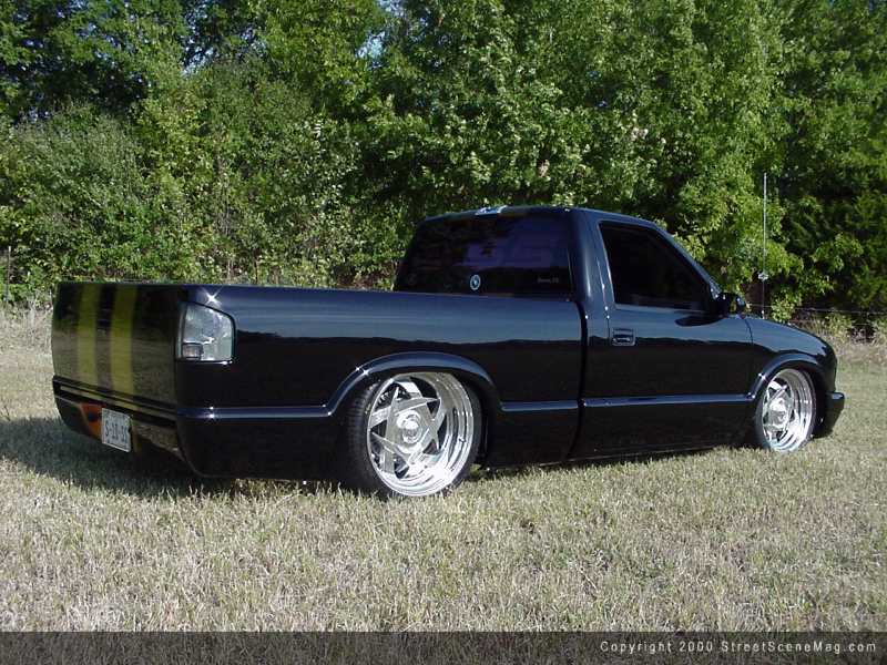 Next on the agenda for some eye goodies would be a polished intake along with a K&N filter charger intake system. To continue the exhale of the S-10; a 2 ½-inch stainless steel exhaust was bolted up along with a Flowmaster 2-chamber muffler. Other engine compartment goodies would be things such as an AC Delco air conditioning.   Scott has set future plans for his SS S-10 and the list includes some major mods such as; Body drop, suicide doors, Chop top, and a different set of graphics. Scott would like to thank Russ Hall, Charlie Brown, and his Mom and Dad, and his club Sweet Temptationz for their support.