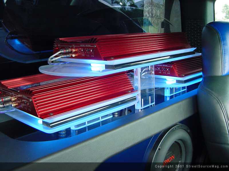 John's choice of head units was a clarion pro audio, along with the head unit he installed a Zapco sp7-sl equalizer running to Mb quart Q-series mids/tweets and Orion HCCA 10's. To supply power to all these speakers John is running 1 Orion HCCA 250, 2 HCCA 225's and 1 ADS p-4100.