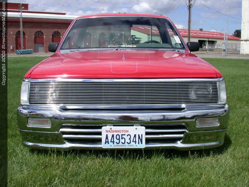 With Brian's new found low, the fenders at all 4 corners would surround his 18-inch Budnik Grid six's wrapped in 235/40 inch Pirelli rubber. With things moving at a livable pace, it was time for Brian to work his knowledge to the exterior. Starting up front for the mean look, a full polished phantom grille would be bolted up along with having shaved the emblems off of the front fenders.