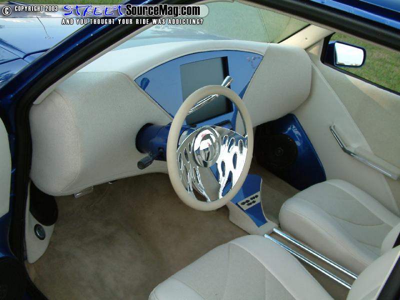 Other interior panels would be wrapped in vinyl. Next Tony would bring the seats to Rick's Upholstery of Mooresville, NC to wrap the new Grand Am seats in sand tweed with light beige vinyl insets. To help pull things together, a Billet Specialties steering wheel would be installed along with an Empire rearview mirror. To finish the light color look, the stock carpet was replace by a beige one from a Lexus.