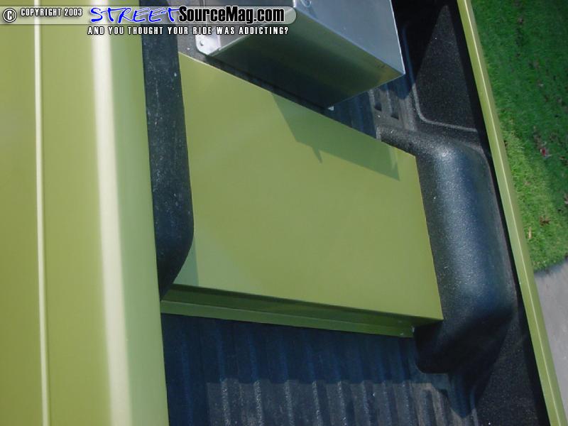 To get started with the build up of the truck Rusty knew he had to bring this future eye catcher close to the ground, up front Rusty yanked the front coil springs, shock and spindle and mounted up a 2" drop spindle, firestone airbag and a set of drop shocks. Out in the rear of the truck Rusty took it upon himself to junk the factory leaf spring and mount up a 3-link/panhard setup in their place.