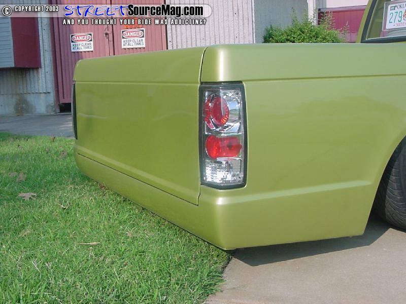 Kyle Jones took over on the body work and shaved the doors, bumper holes, engine firewall, roll pan, tailgate skin, antenna, wiper cowl and to top it off he suicide the passenger door.