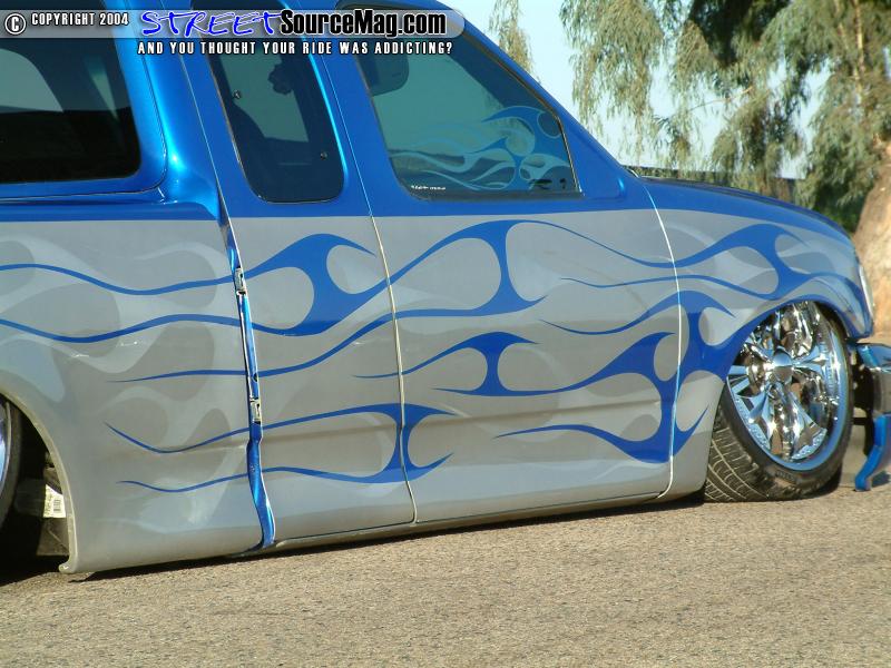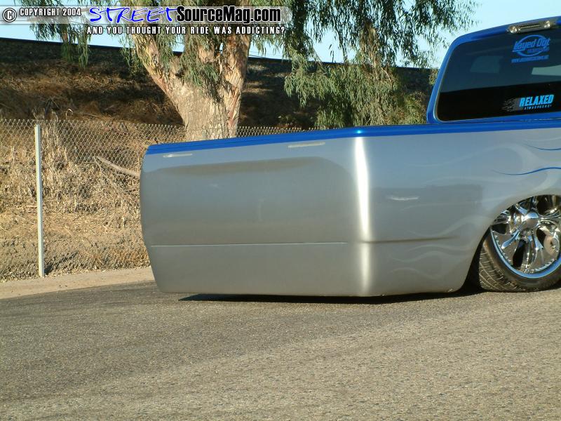 The taillights would then be removed and shaved with 2 10-½ inch LED lights installed in their place. The tailgate would be welded shut along with a weld in roll pan making the rear completely smooth. An LED 3rd brake light would then be molded in to finish off the exterior body modifications.