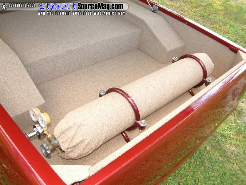 Next they would install a TCI 3 link in the rear allowing the leaf spring set up to be ditched to the side. With the rear ready to bag it was time to tear into the front. Starting with the hub assembly Chris would have them convert over to a DJM Toyota drop spindle along with Toyota hub and brake. Next the upper and lower arms would be re-drilled to accommodate the new Toyota products. Next a set of Firestone 2500’s would be installed upfront while 2800’s take place in the rear.  Toxic shocks would then be installed at all corners to help with the ride. ½ inch line would be run through the system and the air is pushed to the bags through Extreme valves. Having the suspension and frame work complete would be vital to the 3-inch body drop applied to the Pup. But before writing it off complete it would be time to work the exterior body.