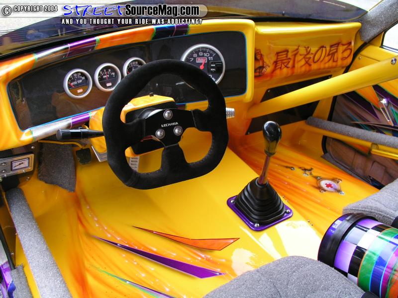 The words on the back cab wall are not painted, that is the underlying carbon fiber that was masked off when the interior was painted yellow. The yellow hid the seams of the carbon fiber, and reinforced areas. They only let the carbon fiber be exposed in the areas that would look the best. Plus it lets people know how much CF there was in this build. Approx. 12 Linear yards.