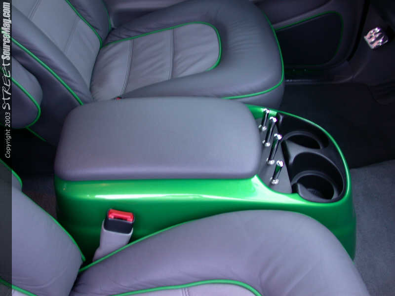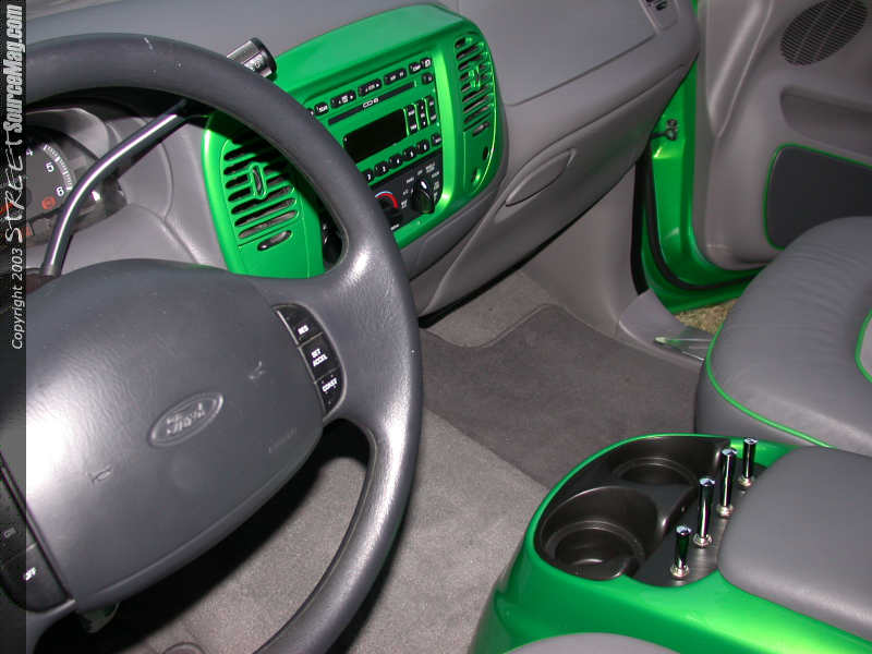 With long trips to shows around the west, the sounds and video would be next on the list. The Stock 6 disc CD player/stereo would be painted to match the interior will an 8-inch sub would be installed into the side panel with Rockford Fosgate amplifiers to push the system. With the stereo installed it was time to install the 7-inch wide screens into the headrests finishing things off. CJ himself did the wiring of the stereo and video.