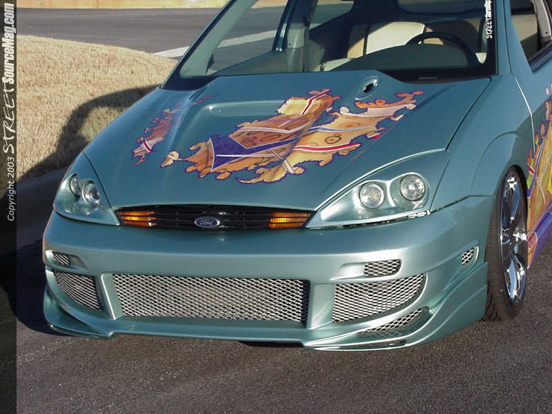 Howard made up his mind that this time he was ditching the race-inspired wheels and rolling the bling-bling. After a long search, he chose 18x8 Axis Alegis wheels and wrapped them in 215-35-18 Falken tires.   Howard tells StreetSourceMag that he is much happier with the car this time. He sends a special thanks to his friends and family as well as the people who helped him complete the Focus, including Mike Stewart, Terry Williams, Mike and Pete Prince and his club Xtreme Lowz.