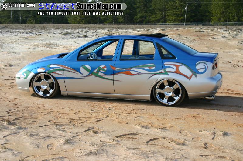 Metal Magik decided it was time to rid the Focus of its door handles, stock tail lights, head lights, mirrors, moldings, antenna, and change it up a little bit. The rear doors where fitted with a set of suicide door brackets while the front doors remain stock to give it the look Stevie wanted. In place of the stock taillights, Metal Magik molded some Supra Tails in the trunk lid to make the rear end of Stevie’s Focus stand out.