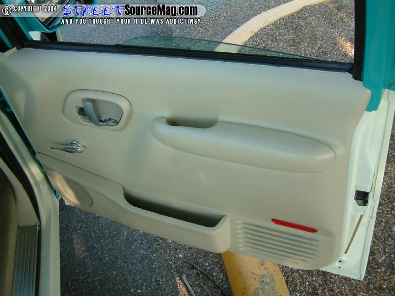 ____________________________________Mitch would turn to Matt Sturgill at Kustom Kars and Audio for the final show stopping, double take interior. For starters Matt would custom fit a ’49 Ford dash and then create a handmade set of door panels to match. The pieces would then be painted by Robert Hamilton of www.waykoolart.com.