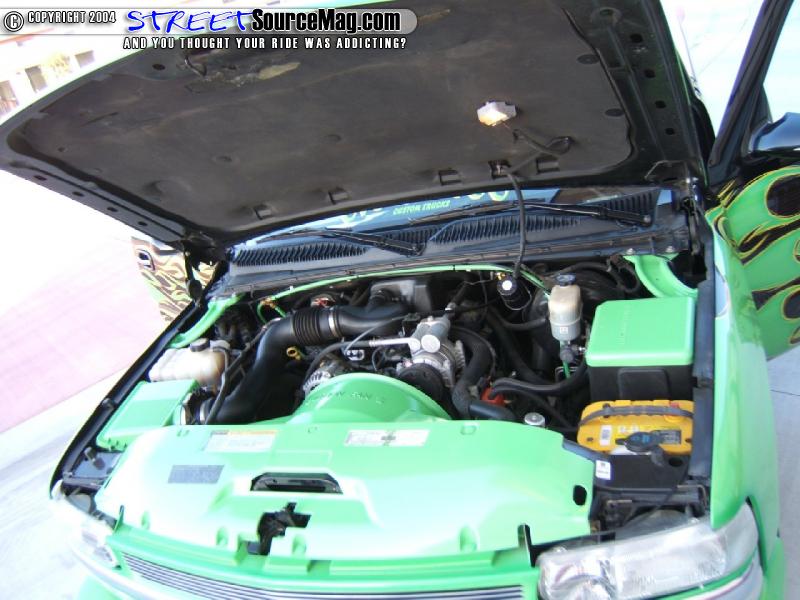 While most would stop there, Aaron new that to maximize his points at shows, he needed to add a little spice under the hood. For that he painted all the plastic pieces in a matching green to the exterior along with other various engine pieces. Then he added an engine dress up kit along with covering all hoses in more accenting green.