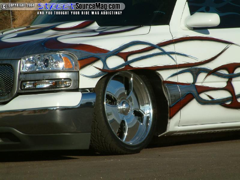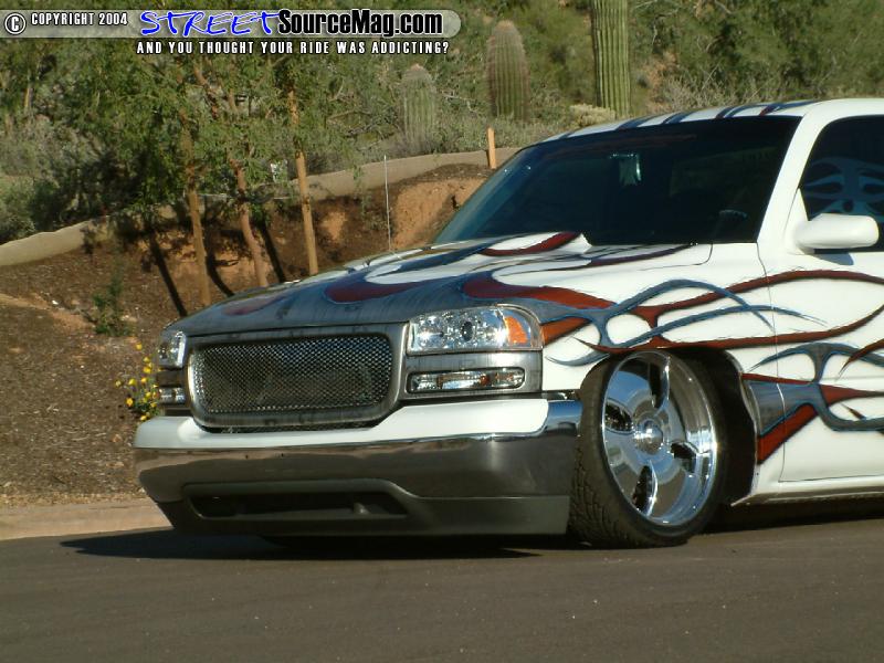 Tahoe door handles would then be found in the place of the stock handles while Yukon clears would take the place of the stock headlights, while ’03 Chevy taillight are found out back. John Owens of Phoenix would handle the bodywork and modifications while Mark would leave the paint work to Troy Buck of Monster Paint F/X.
