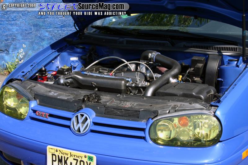 The motor was then wire tucked and all the unnecessary emissions were tossed. A 90amp alternator was then bolted up to keep things powered. Jeff then installed a 50 shot Nitrous Express nitrous oxide system. The Gti runs on a 034efi IIc Standalone engine management system. Jeff’s motor also features an ATP fuel rail, Full Race down pipe, and all braided lines. The trans was then fully built so it could handle the 406whp @ 21lbs of boost. Jeff also installed a Quiafe limited slip setup.