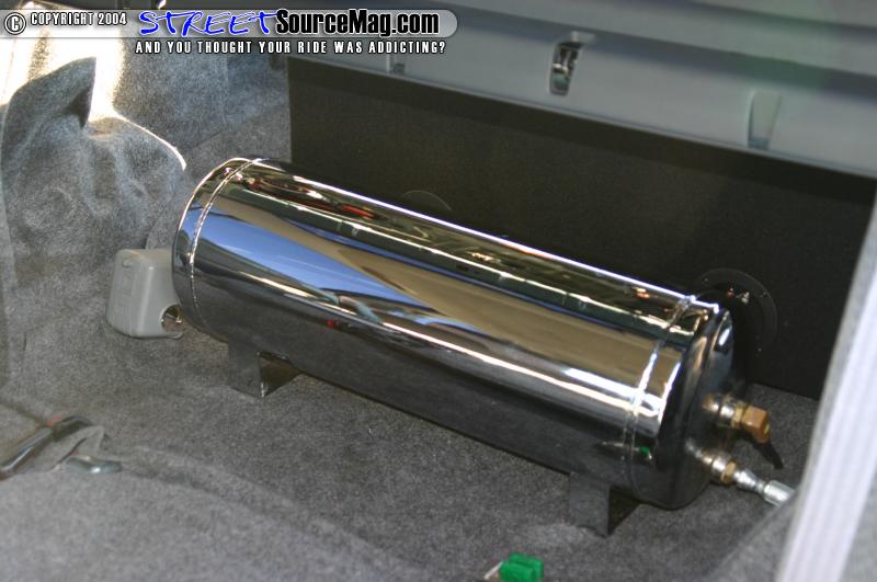 With the majority of things completed that Sal wanted done he next moved onto the suspension. Sals Civic sits on air cylinders on all four corners. A chrome 5gal air tank dumps into ½ Danz Valves to lay it out on the 17” ADR Phantom wheels.