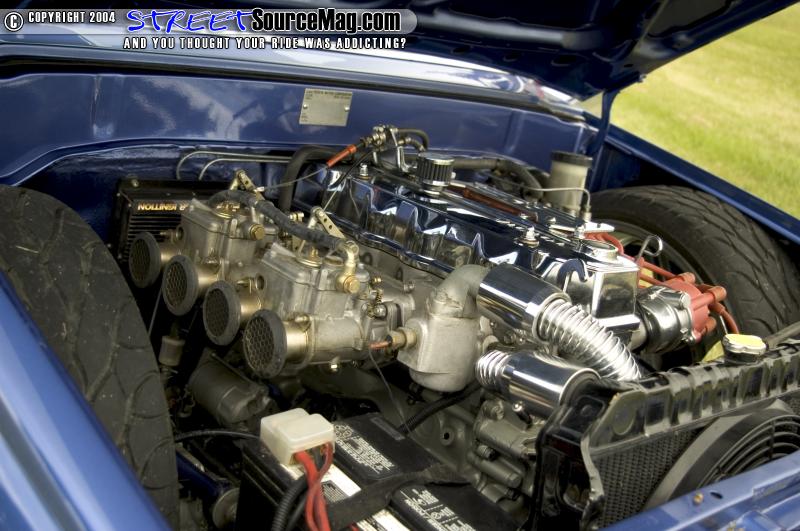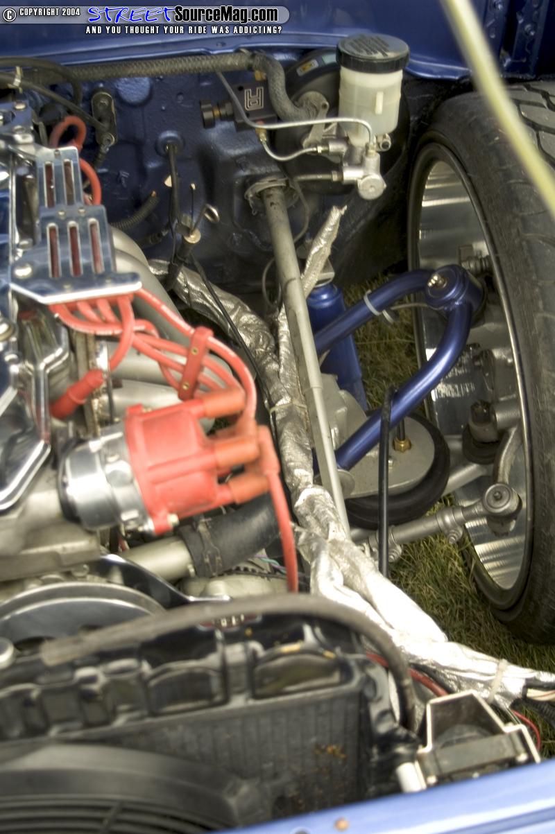 Next you will find a Flex-a-lite electric fan before your eyes make their way to the Dual side draft Weber carbs. Not yet finished Von would install a Crane Cam fire ball coil, CraneCam HI6 Ignition, LC Engineering Pro Distributor, Magnecor plugs wires, electric fuel pump, LC Engineering 7" water pump power pulleys and finishing things off with a 4" crank pulley.
