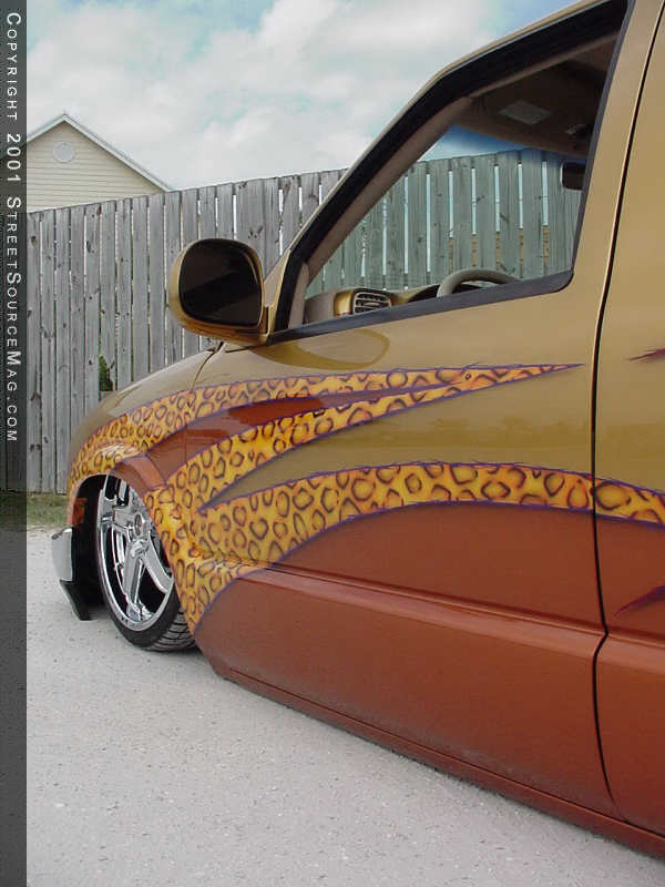 Next, Tom came up with a few ideas to set the exterior of his Blazer off from the rest. To get his ideas moving, Tom contacted Mad Mods in Hollywood, Florida. In their hands, Tom's Blazer was first shaved of all unnecessary items including the roof rack, door handles, antenna and taillights. Mad Mads then welded the rear of Tom's Blazer closed and installed High Tech LED's in the place of the taillights. In the rear of Tom's Blazer, Mad Mods also went to work installing the rear quarter panels from an S10 pickup truck.