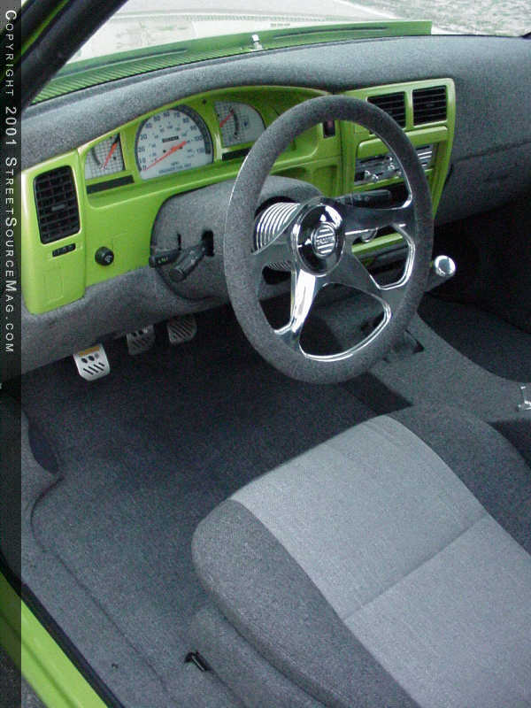 Knowing that no award winning show truck is complete without an interior that can hang with the best of them, Jason turned his focus to this area, and once again called upon some of the people that helped him get his Tacoma finished thus far. First, Jason and his friends removed the dash, covered it in grey tweed, and finished it off with painted accents.