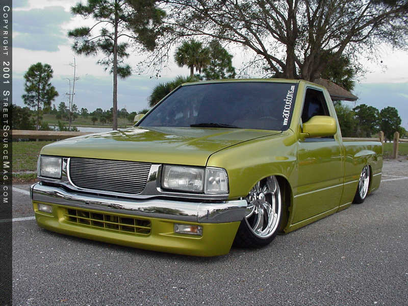 Bruce contacted the crew at Intro for their opinion on a set of rollers that would only compliment all of the other hard work involved. When it was all said and done, Bruce chose Intro Twisted Vista 6 in the 19x8" fashion and wrapped them in Nitto NT 555 225-35-19 rubber. Under the hood, Bruce has relatively left things pretty close to stock, but has removed the emissions system and added a few painted items. Bruce also had a better breathing Dynomax muffler installed, giving his truck a throaty sound. It's hard to believe what Bruce's truck used to look like and what it looks like today. Not an inch of his creation has gone untouched. The show circuit can only thank the Lord that Bruce is here today to have brought back such a smooth creation to share with the world. Bruce would like to thank the whole crew at AON Customs, including Craig, Jason, Trent and his friend Vinnie for all of their hard work returning his Isuzu to the show scene in such a short time frame.
