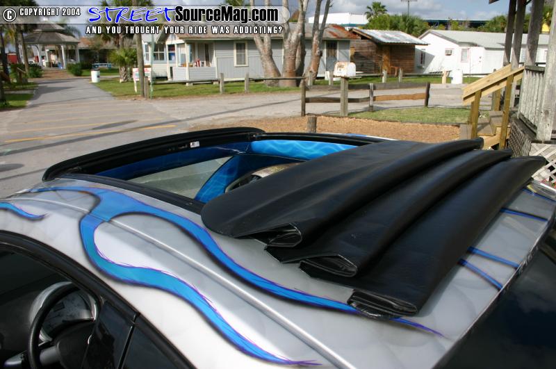 Keeping the modifications limited to the exterior, Selena would have Anthony and the crew from R.A.W. of Sanford, FL installed a sliding ragtop to allow the Florida sunshine shine through.   With the ragtop cut and ready to install, the VW would then be pulled in the paint booth for numerous amounts of paint sprayed and airbrushed.