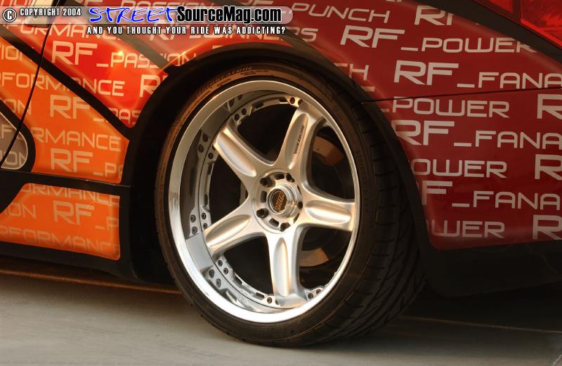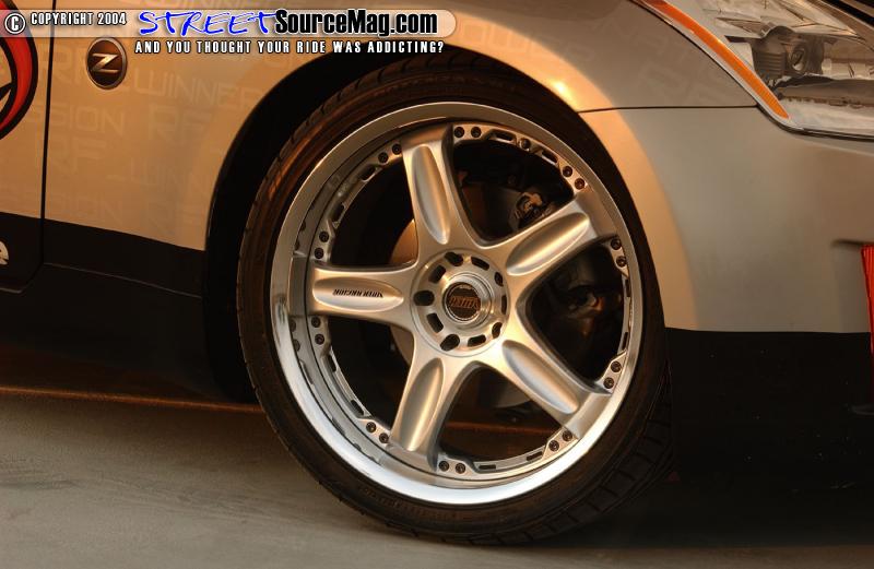 With the exterior modifications complete they would then install an HKS Hypermax LS coil over suspension. The new suspension would allow them to lower the 350Z fenders down to the VOLK GT-C face II 19x9.5 inch wheels found in the back while the front is found to have 19x8.5 bolted up. The wheels would be wrapped with Bridgestone Potenza 275/30's out back and 245/35 upfront.