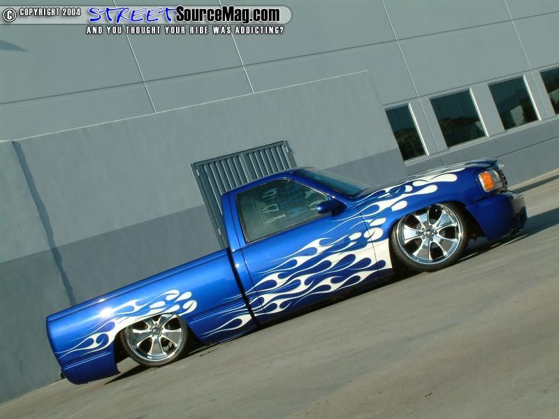 With the bodywork complete it was time to block and prep the Chevy for the paint to be applied. The paint of choice would be House of Kolor magic blue base with white flames and blue, ice pearl through out. Starbucks Customs would be responsible for all of the paint and bodywork done.