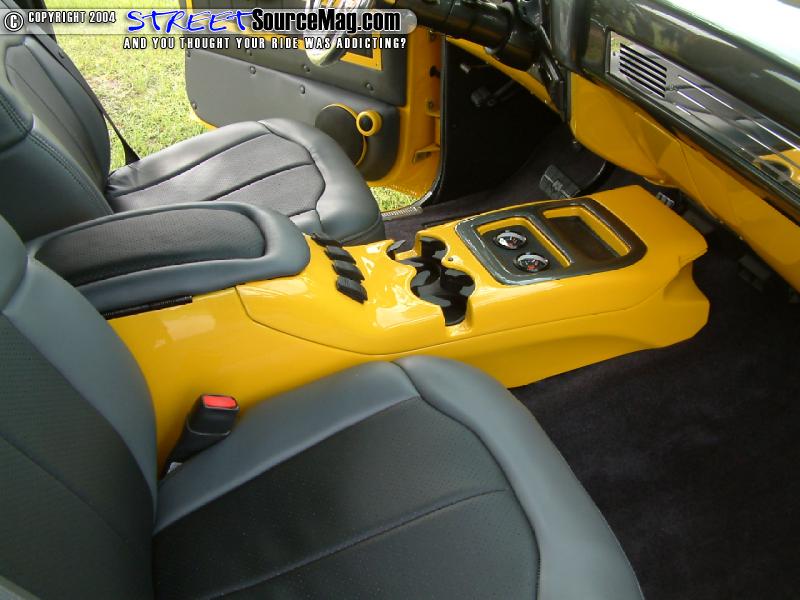 Roy's Custom Upholstery of Houma, LA would apply this work. To bring the interior together with the exterior look, the panels that weren't touched received a nice coat of paint. For a center console Kevin would slick down and paint one out of a '99 Cadillac and install it to perfection.