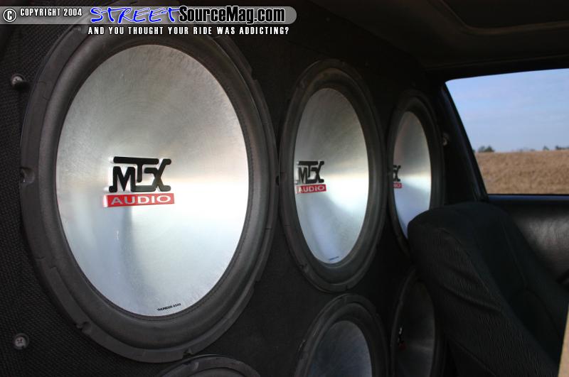 The center console flows from the front seat into the back where it meets the wall mount sub enclosure. Phil’s wall mount houses 6 15” MTX subs. 3 Class D Boss amps power all these. Boss mids and tweeters provide the vocals.