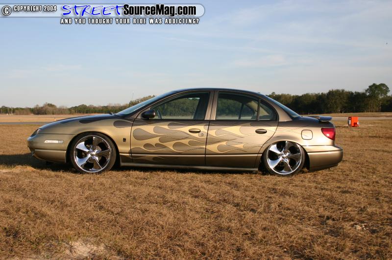 The carbon fiber hood would also be given a paint treatment. Cody went a step further and had the mirrors, and pillars painted to match the car. Next, Gold Pearl flames would be laid over the car to make it stand out. Black pin stripping finished off the paint.