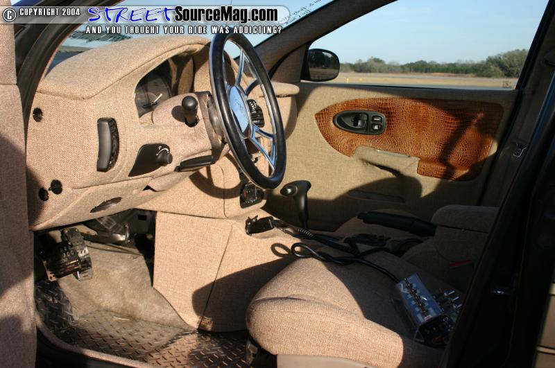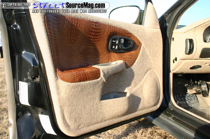Moving on to his interior Cody had Mike Hicks at Dixie Rod and Customs tweed almost basically the whole interior. The door panels where covered in oak tweed along with gator skink inserts. Most of the other panels in the Saturn were also covered with oak tweed including the dash.