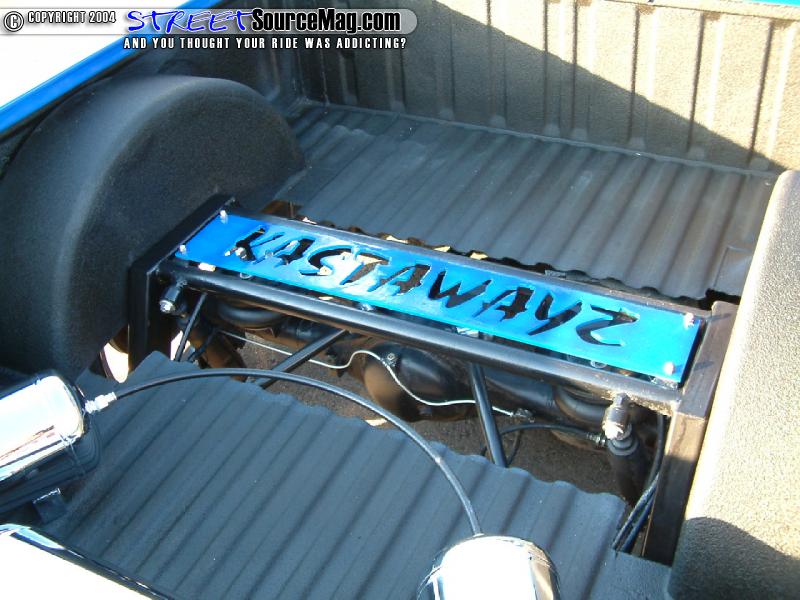 For starters Jerry would turn to the suspension to bring his newfound project to a respectable level. The back half of the frame would be cut out and rebuilt housing his clubs name “Kastawayz” cut into the bridge. Next, Jerry would have a Chassis Tech 4-link installed into the rear while a set of Chassis Tech spindles where installed upfront. Pro comp shocks would then be installed at all 4 corners to help provide a comfy ride with the Firestone airbags.
