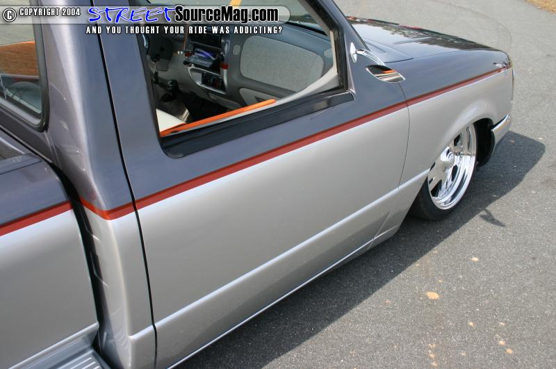Moving up front a set up RS 62 slam bags was fitted along with a pair of Toxic shocks. The frame was then plated with 1/4” steel so it could remain unscathed when Ken wanted to throw a few sparks for onlookers. With his goals in order and his frame planted flat on the ground Ken was now ready to drag his truck into the body shop.