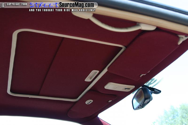 The seats were wrapped in tan leather and burgundy tweed to flow with the rest of the interior. Scrape-N-Customs set Fleet up with the Clarion 7” TV, Audiobahn speakers, and PBX 12” subs. These where all powered by Audiobahn amps. The subs and amps were fit into a custom fiberglass box built into the trunk of Fleets Sebring.