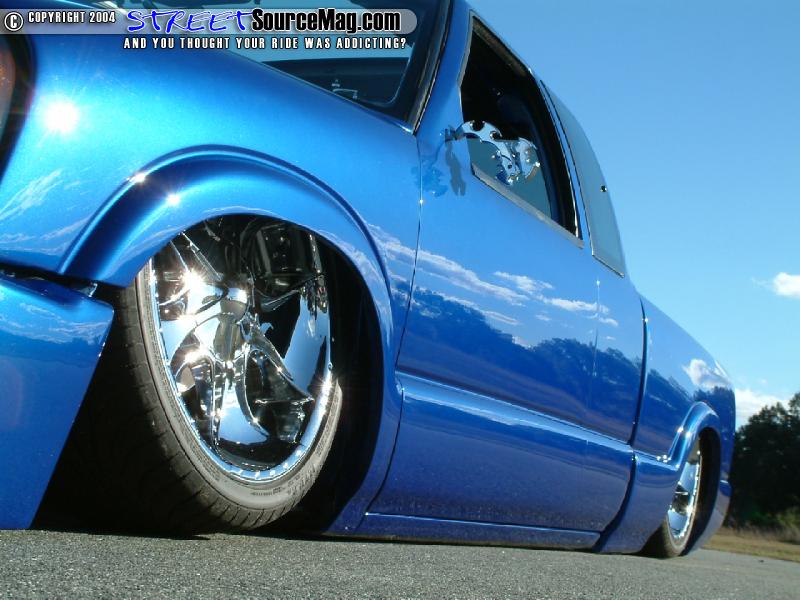 Wanting to get the S10 down on the ground Gil would begin the process of applying a 3 ½ inch body drop to his ride. With a custom 2 x 3 x 3/16” frame constructed under the body Gil would be well on his way. In the rear Gil would install a custom 4-link while the front would house a set of 2” DJM spindles and ART control arms. With the ability for the body to lay on the ground Gil would then install 4 Firestone 2600 bags with Parker valves for adjustability.