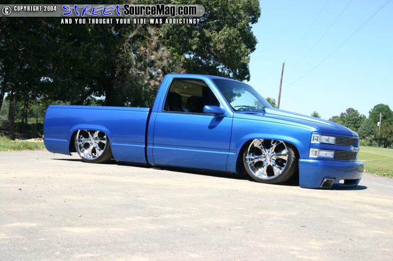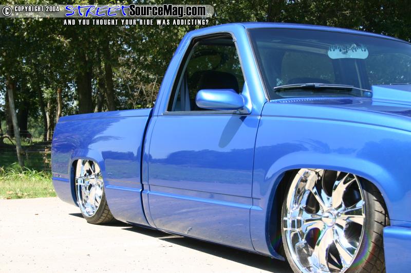 Starting with the exterior of the truck the hood was swapped out for a Harwood Fiberglass hood with a 4” cowl on it. Up next the grille was updated with a 98 Silverado shell and finished off with a billet grille. The bumper was tossed and a 2004 Chevy Silverado SS bumper was converted to fit onto Justin’s truck.