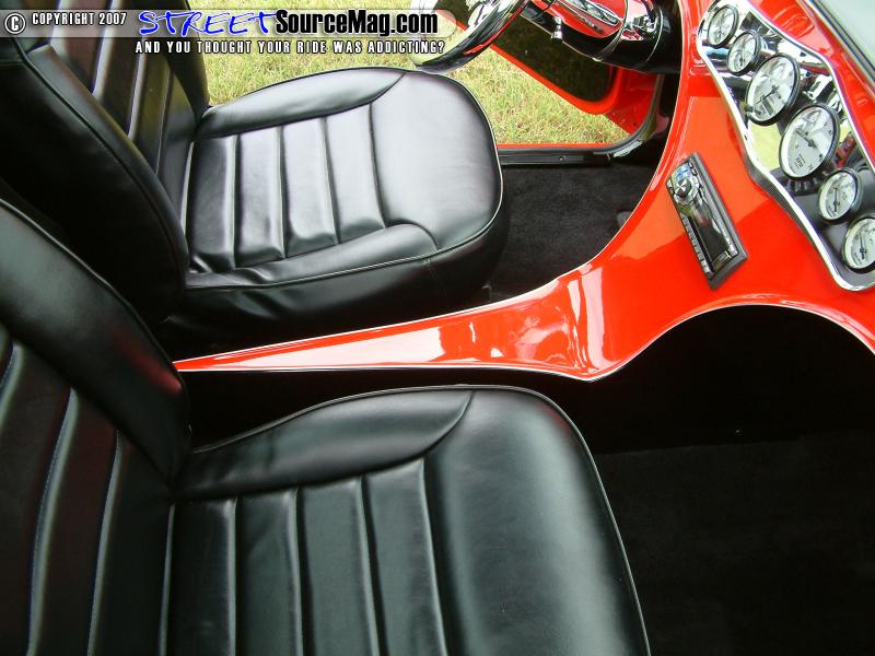 Having the bodywork complete would leave Steve with the interior confines needing the same attention. With the need to keep up with the exterior the dash would be hand made out of steel and painted along with door panels. Keeping up with the new panels Shane would install black leather seats along with painting the remainder of the interior panels.