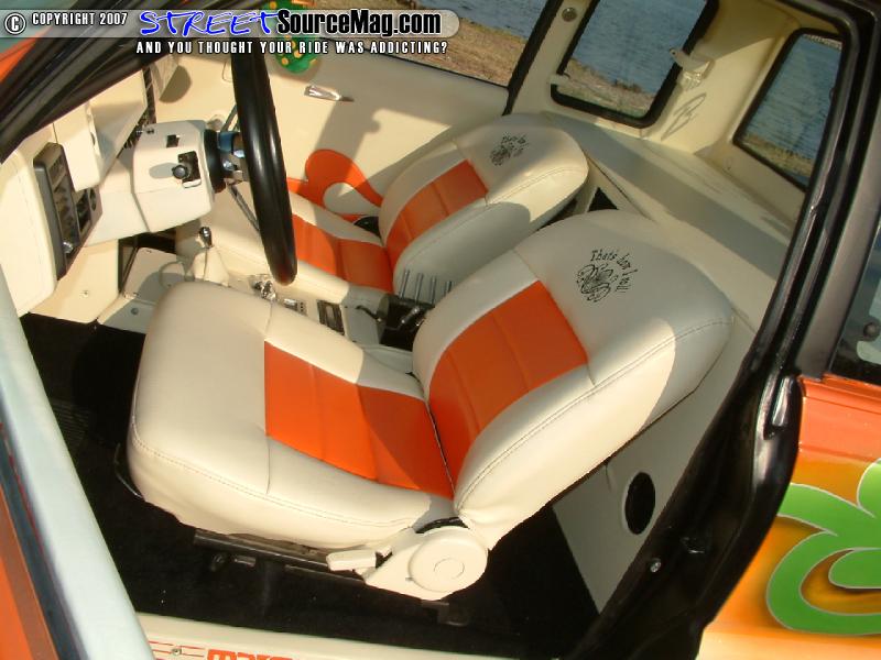 Keeping the customizing moving through out the build up Michael would have the dash along with other interior panels painted while the seats would be wrapped in vinyl. Finishing things off Michael would install digital air gauges along with a custom steering wheel. L&B Upholstery would handle the interior work.