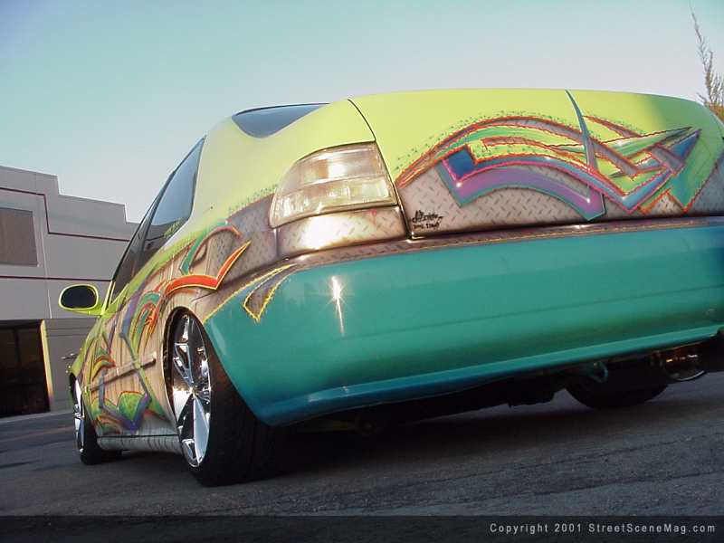 To tie things together, Tony tweeded the headliner and placed a large Honda emblem for added show. To complete the tweed interior, the use of ABC pillars were installed, along with laying the floors in tweed and applying the material on the rear deck. Now that all the panels were covered it was time to match up the seats. To do this, Tony stayed with the charcoal gray tweed and recovered the seats along with utilizing square padding to give an extra clean look.