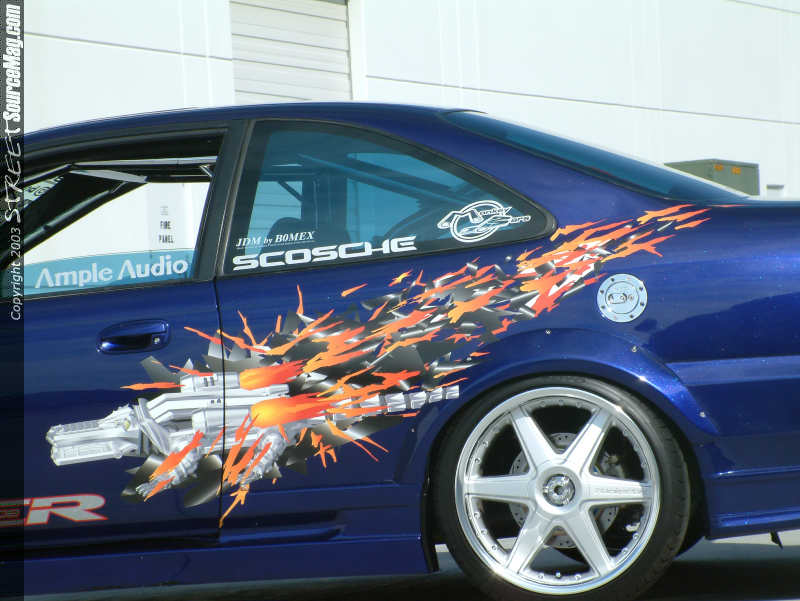 Once the car was striped of the masking tape and buffed to a high gloss, TG Graphics applied Bomex JDM Graphics to the car. To add to the exterior attire a Corvis Aluminum wing and APR Formula 3 carbon fiber mirrors were installed. To ensure proper lighting at night a set of Phillips HID conversions were installed.