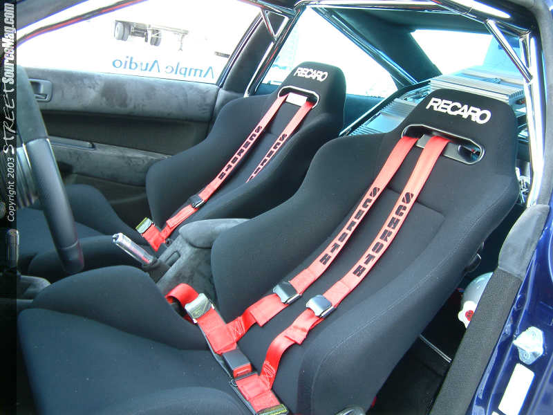 Once the interior was in place the car received a Monkey Bars Chrome roll cage, Schroth racing harnesses, indiglo gauge cluster, carbon fiber dash kit, a MOMO championship steering wheel and various other Carbon Fiber wears were added to the interior.