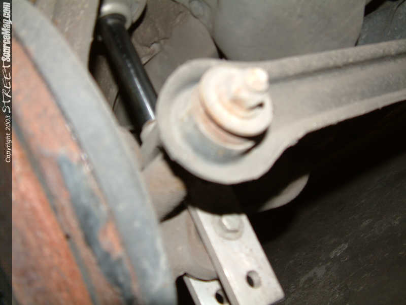 4. The rear suspension is just as easy. First remove the upper cylinder mounting hardware, as well as the lower bolt that secures the cylinder to the lower control arms. This is where you work your leg muscles. The easiest way by far to make room to remove the current cylinders, which is way easier then the factory struts, is to put some pressure on the lower control arms, which will swing them out of the way of the cylinder. Once the cylinder becomes dislodged, simply slide them out of the fender walls.